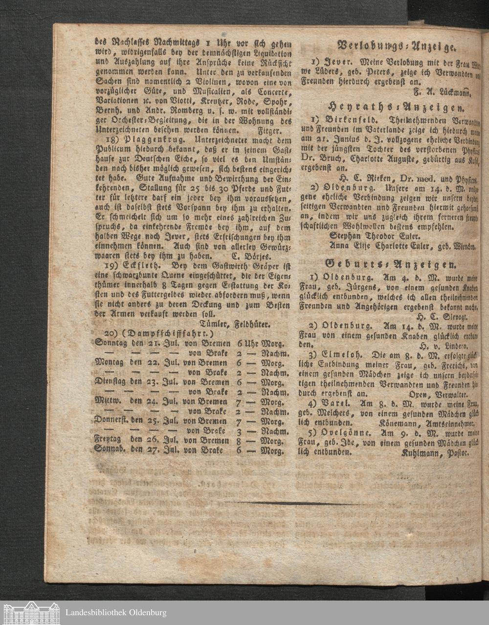 Oldenburgische wöchentliche Anzeigen. 1749-1826