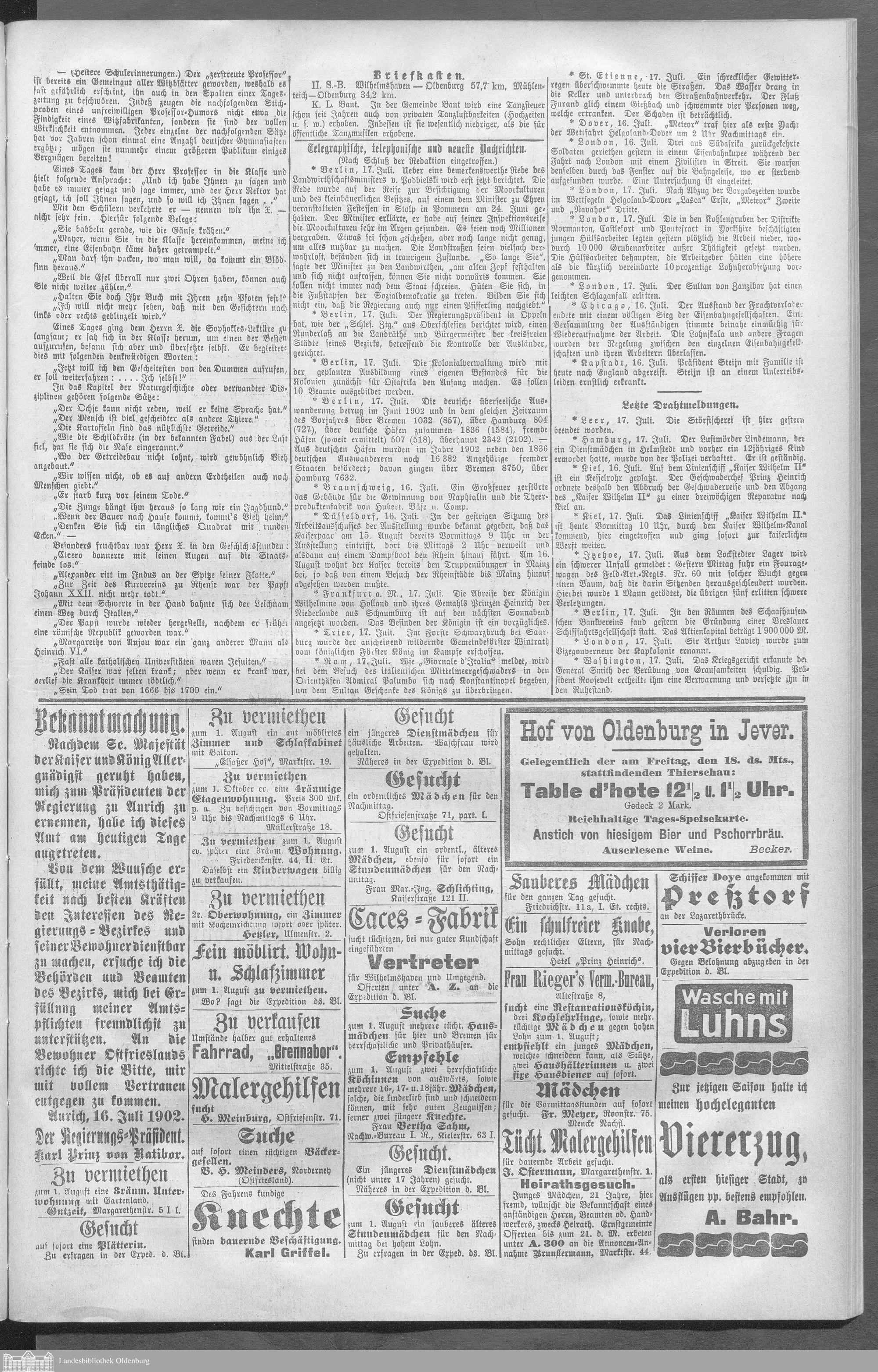 Wilhelmshavener Tageblatt und amtlicher Anzeiger....