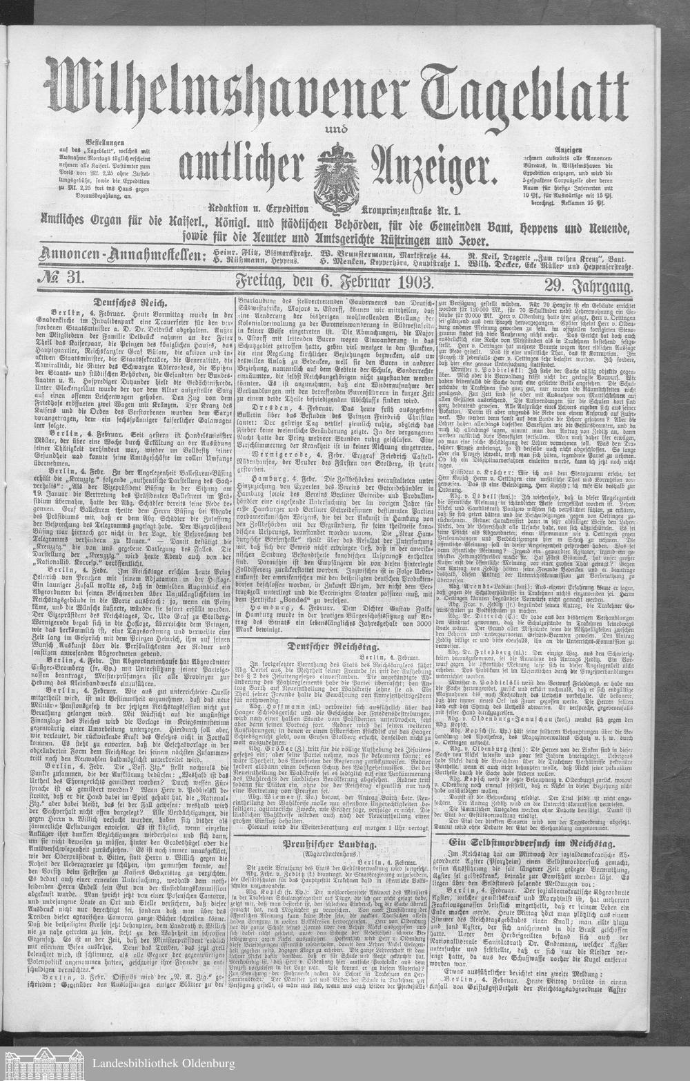 Wilhelmshavener Tageblatt und amtlicher Anzeiger....