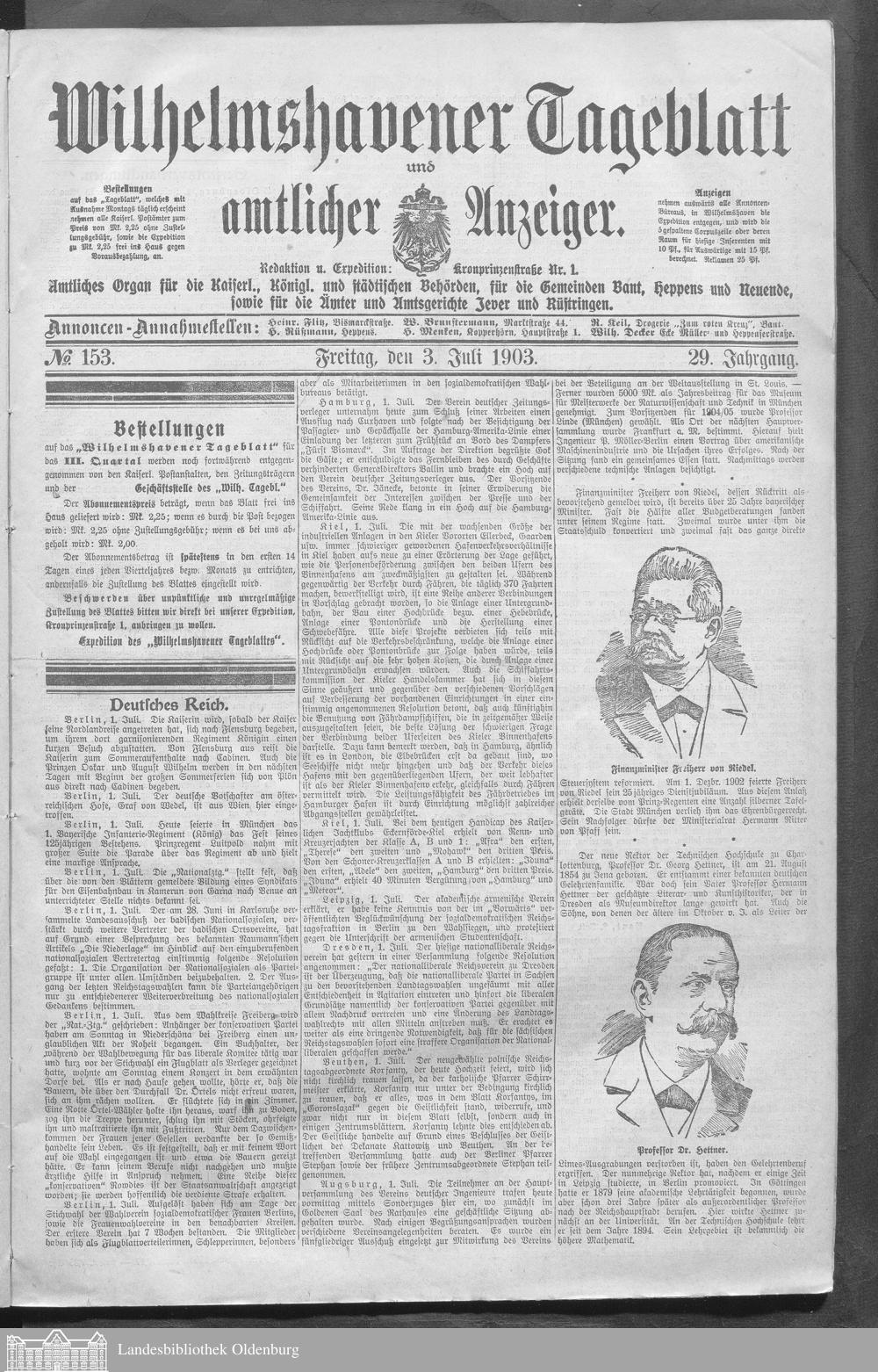 Wilhelmshavener Tageblatt und amtlicher Anzeiger....