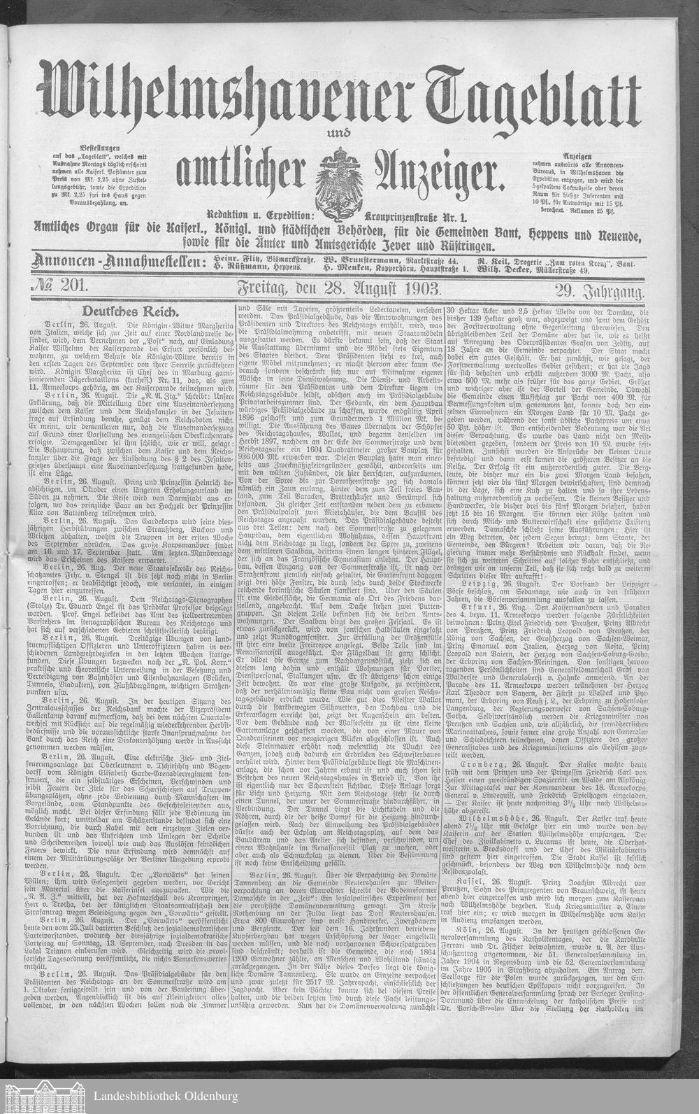 Wilhelmshavener Tageblatt und amtlicher Anzeiger....