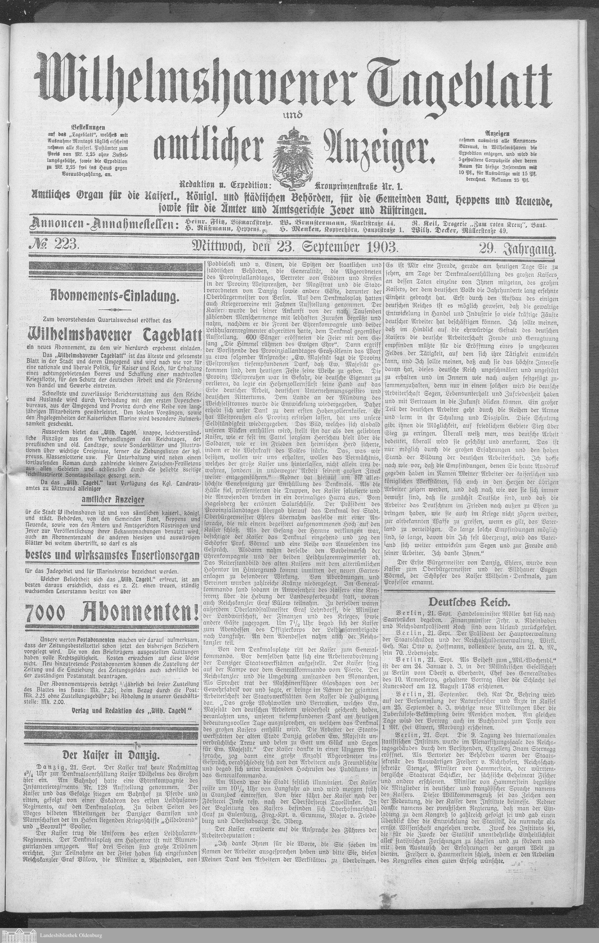 Wilhelmshavener Tageblatt und amtlicher Anzeiger....