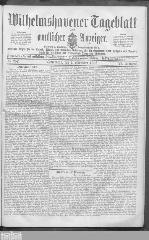 Wilhelmshavener Tageblatt und amtlicher Anzeiger....