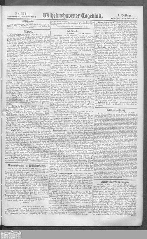 Wilhelmshavener Tageblatt und amtlicher Anzeiger....