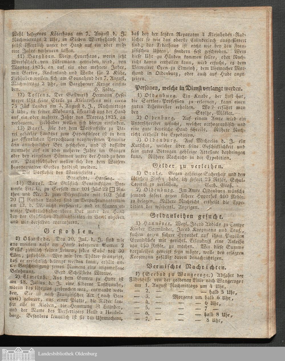 Oldenburgische wöchentliche Anzeigen. 1749-1826