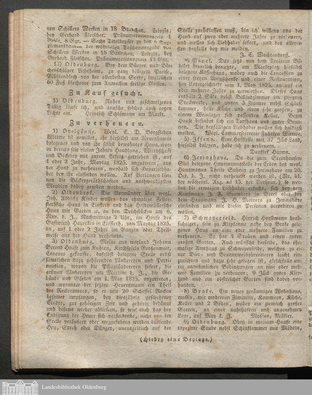 Oldenburgische wöchentliche Anzeigen. 1749-1826