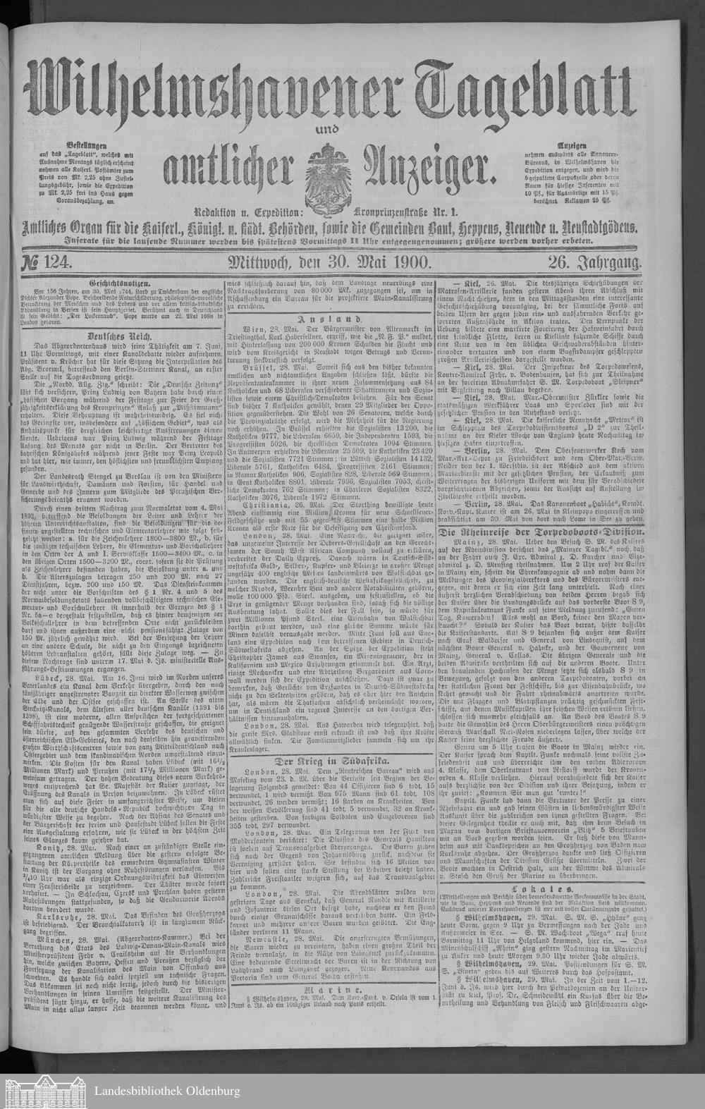 Wilhelmshavener Tageblatt und amtlicher Anzeiger....