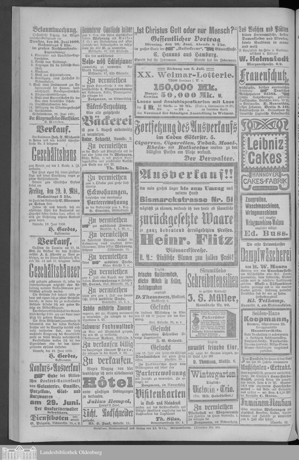 Wilhelmshavener Tageblatt und amtlicher Anzeiger....