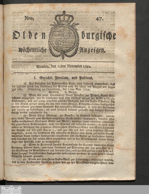 Oldenburgische wöchentliche Anzeigen. 1749-1826