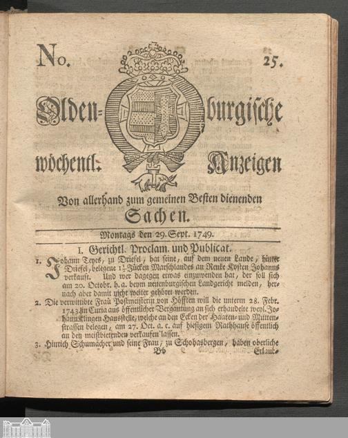Oldenburgische wöchentliche Anzeigen. 1749-1826
