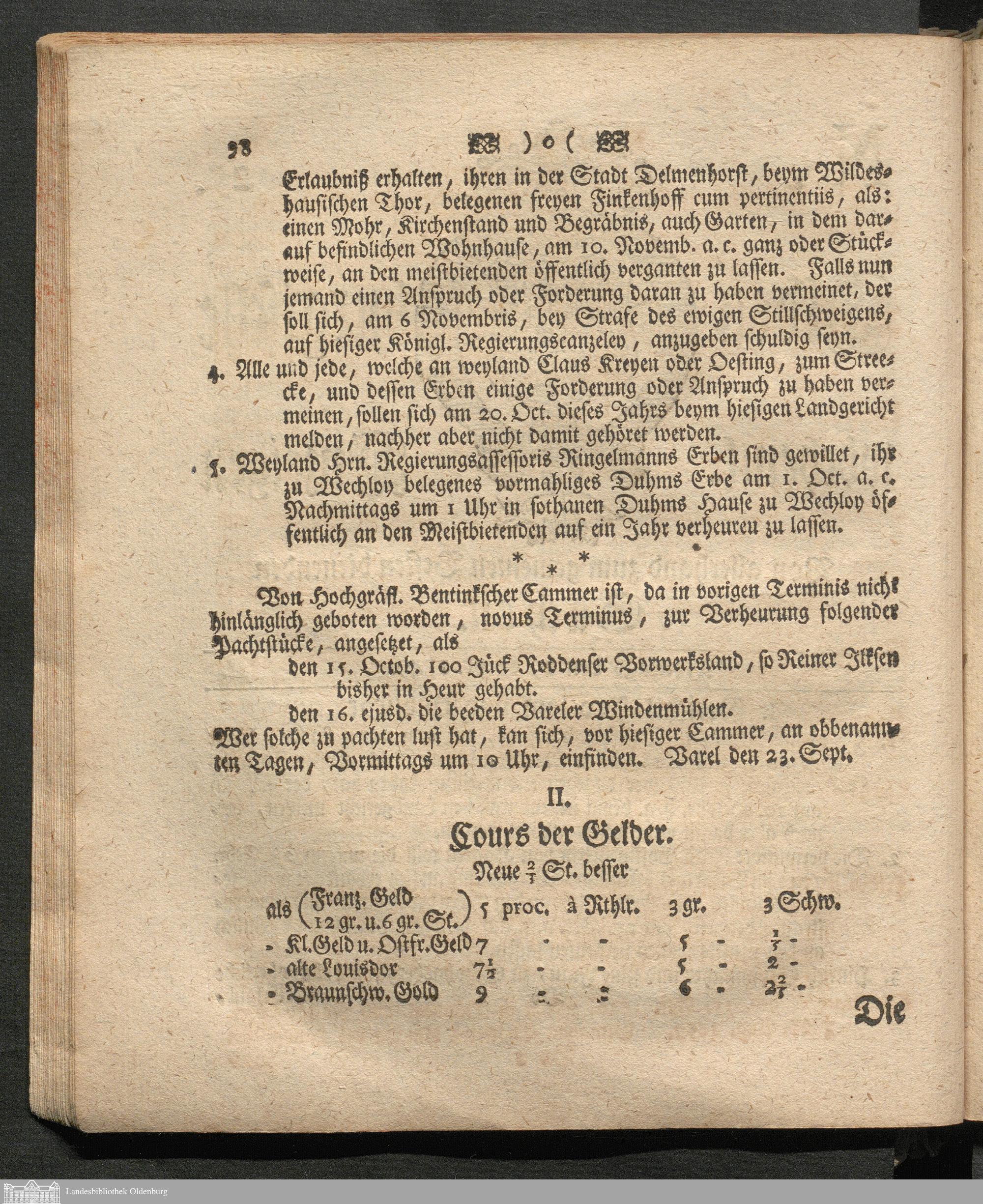Oldenburgische wöchentliche Anzeigen. 1749-1826