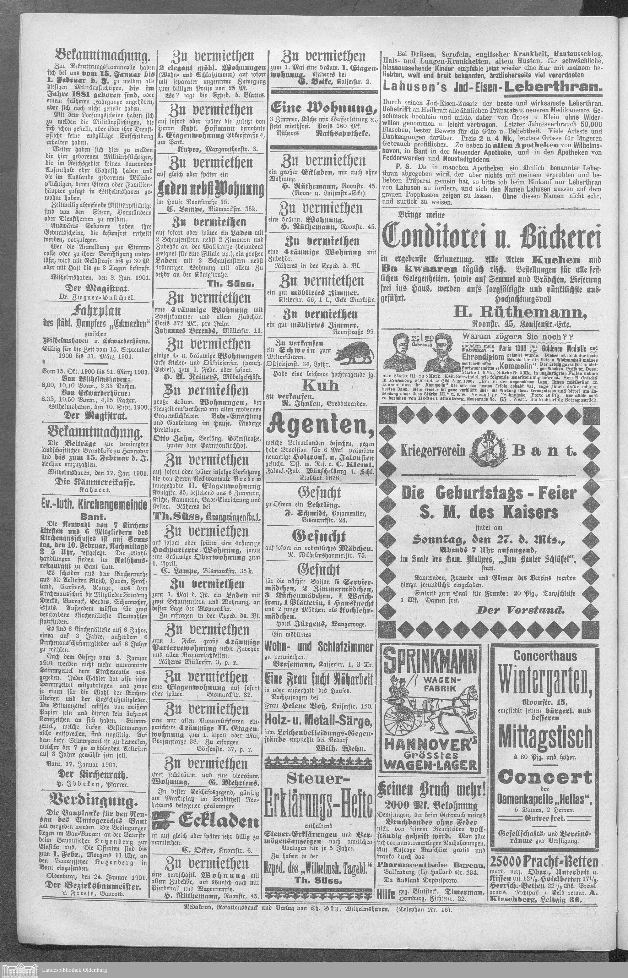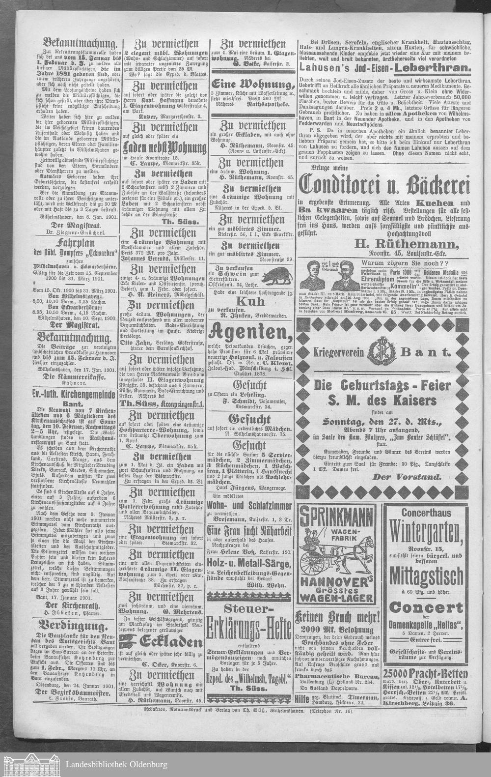 Wilhelmshavener Tageblatt und amtlicher Anzeiger....