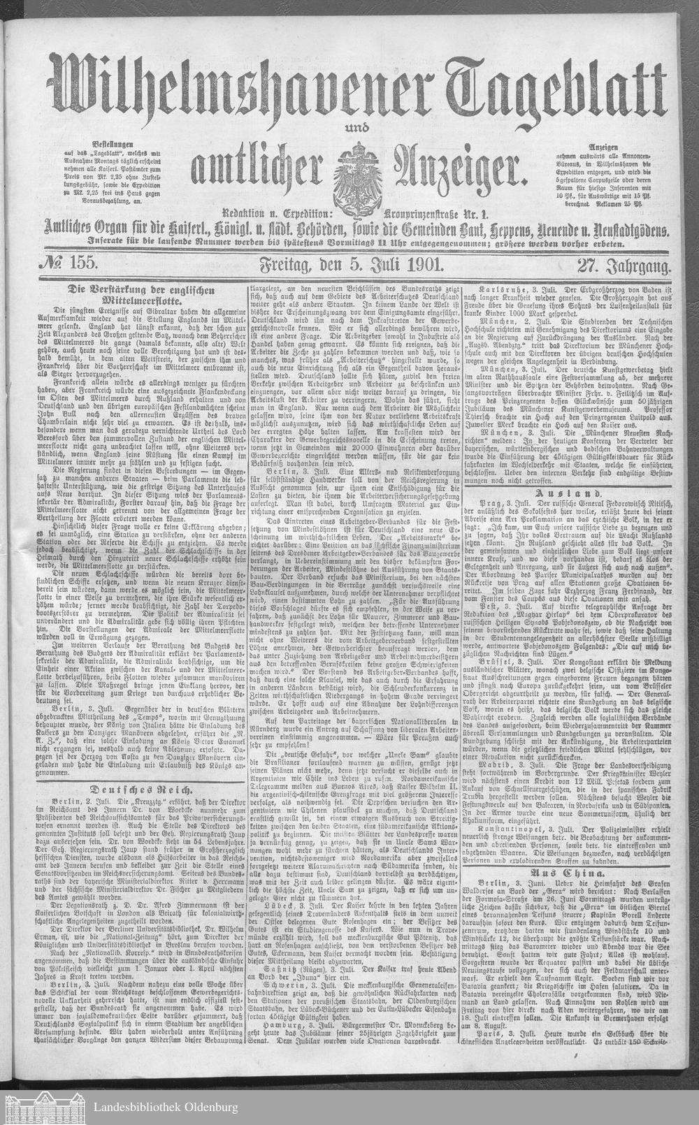 Wilhelmshavener Tageblatt und amtlicher Anzeiger....