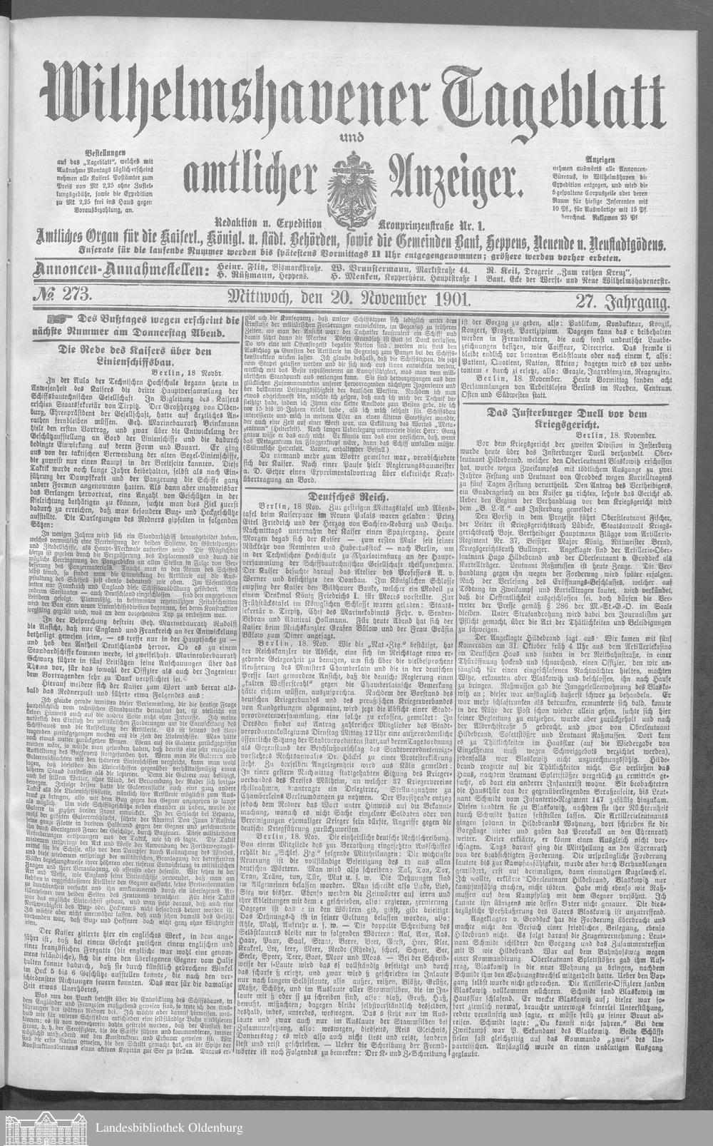 Wilhelmshavener Tageblatt und amtlicher Anzeiger....