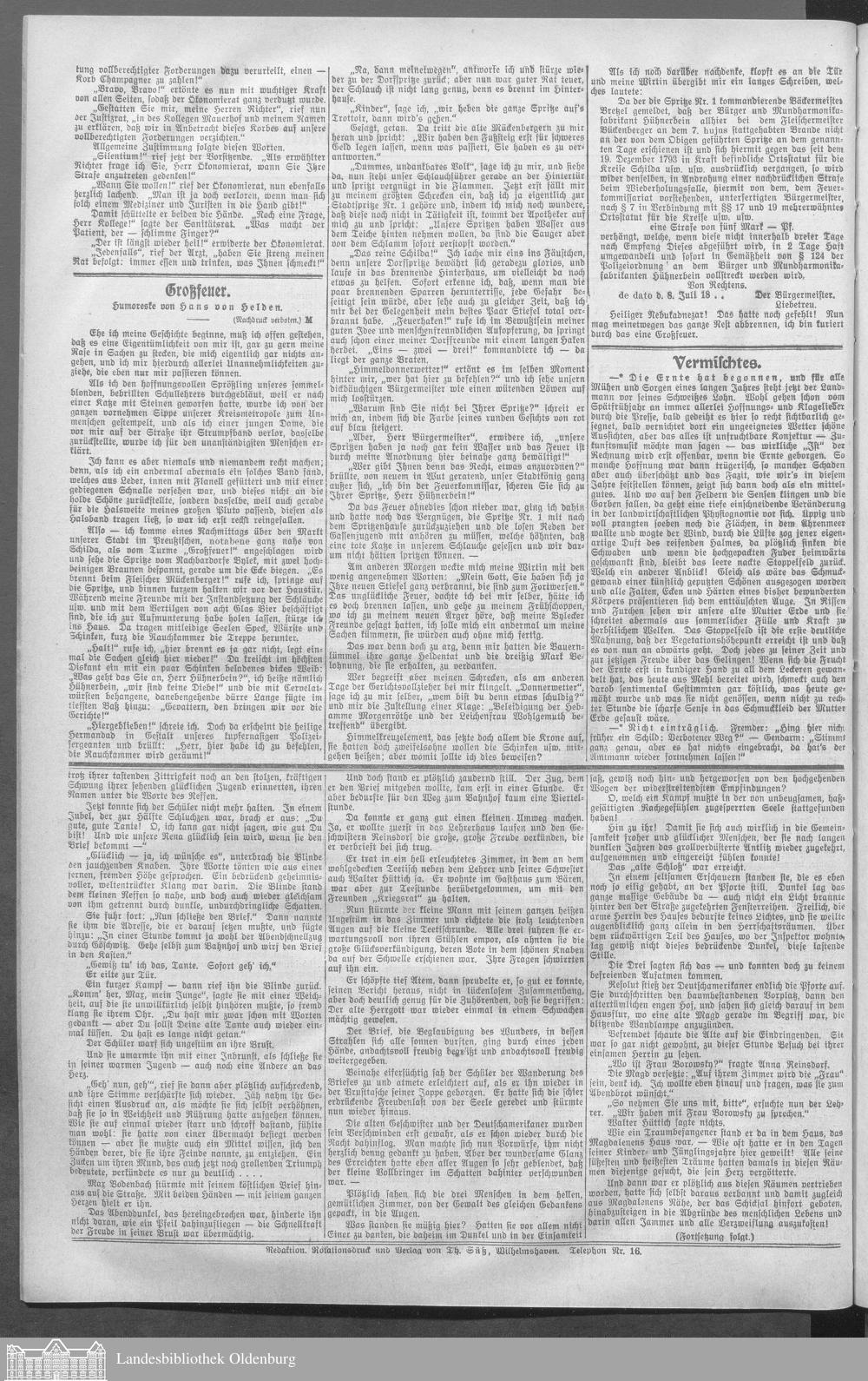 Wilhelmshavener Tageblatt. 1909-1929