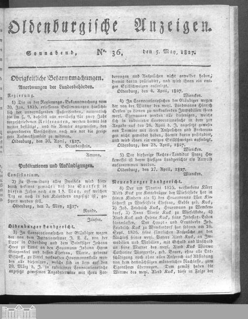 Oldenburgische Anzeigen. 1826-1960