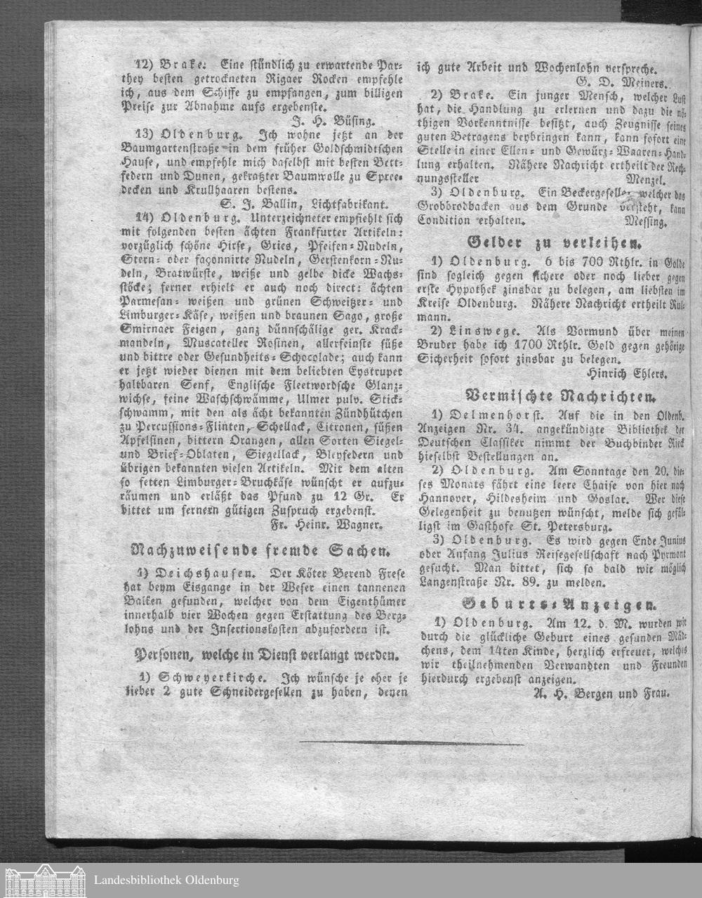 Oldenburgische Anzeigen. 1826-1960