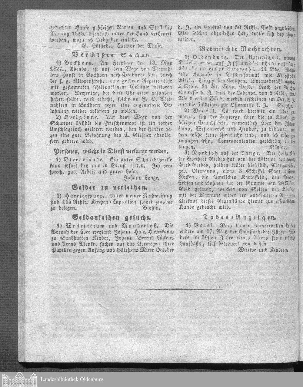 Oldenburgische Anzeigen. 1826-1960