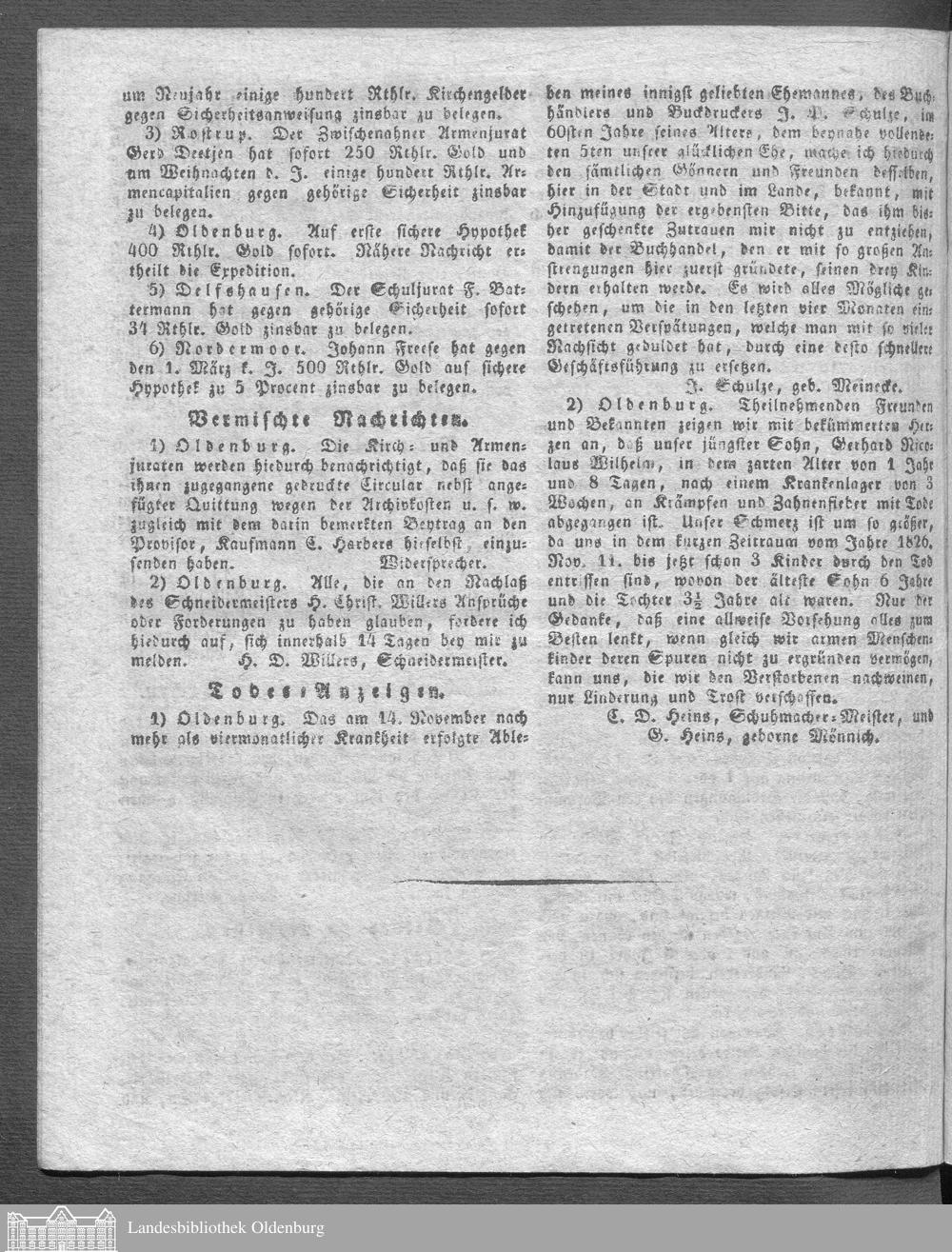 Oldenburgische Anzeigen. 1826-1960