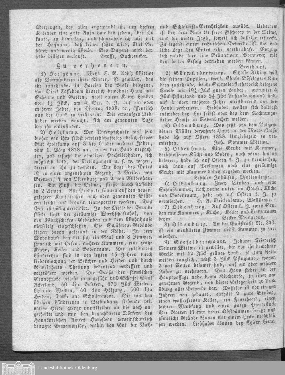 Oldenburgische Anzeigen. 1826-1960