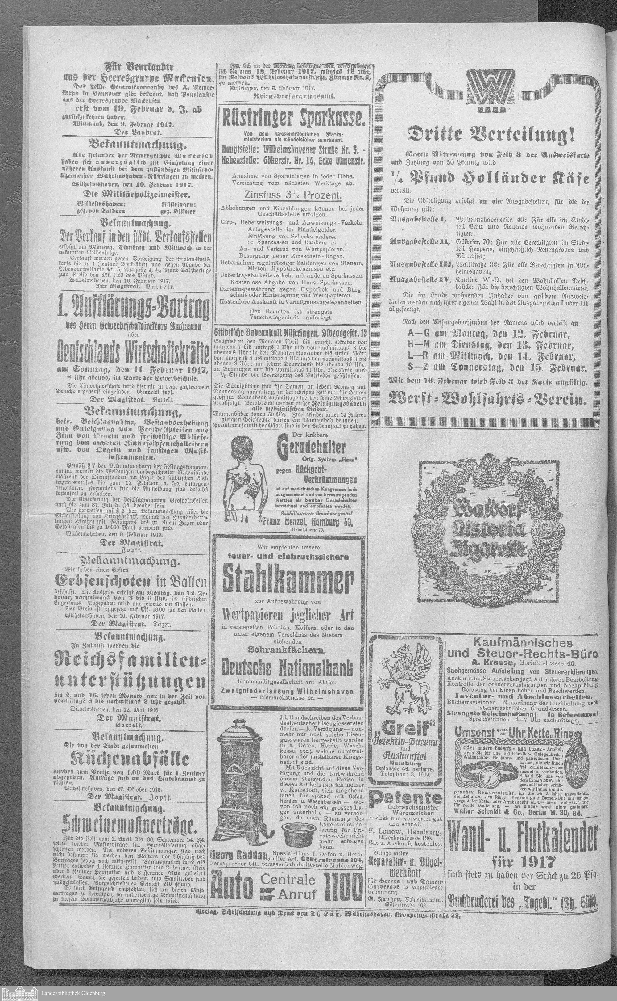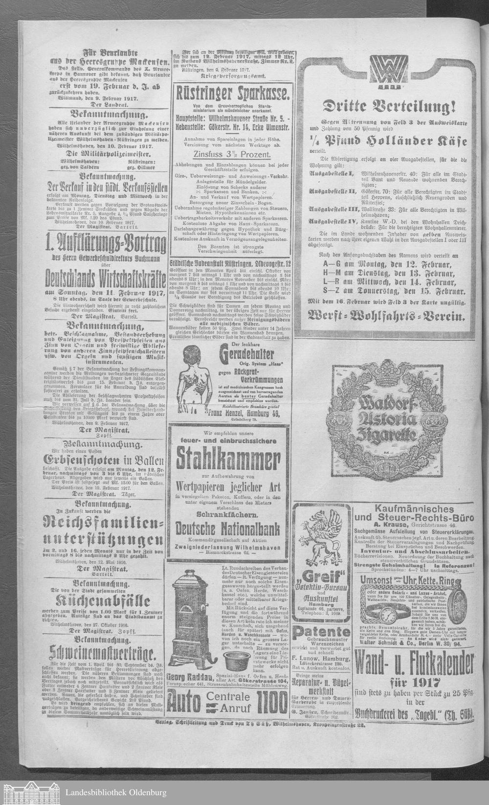 Wilhelmshavener Tageblatt. 1909-1929