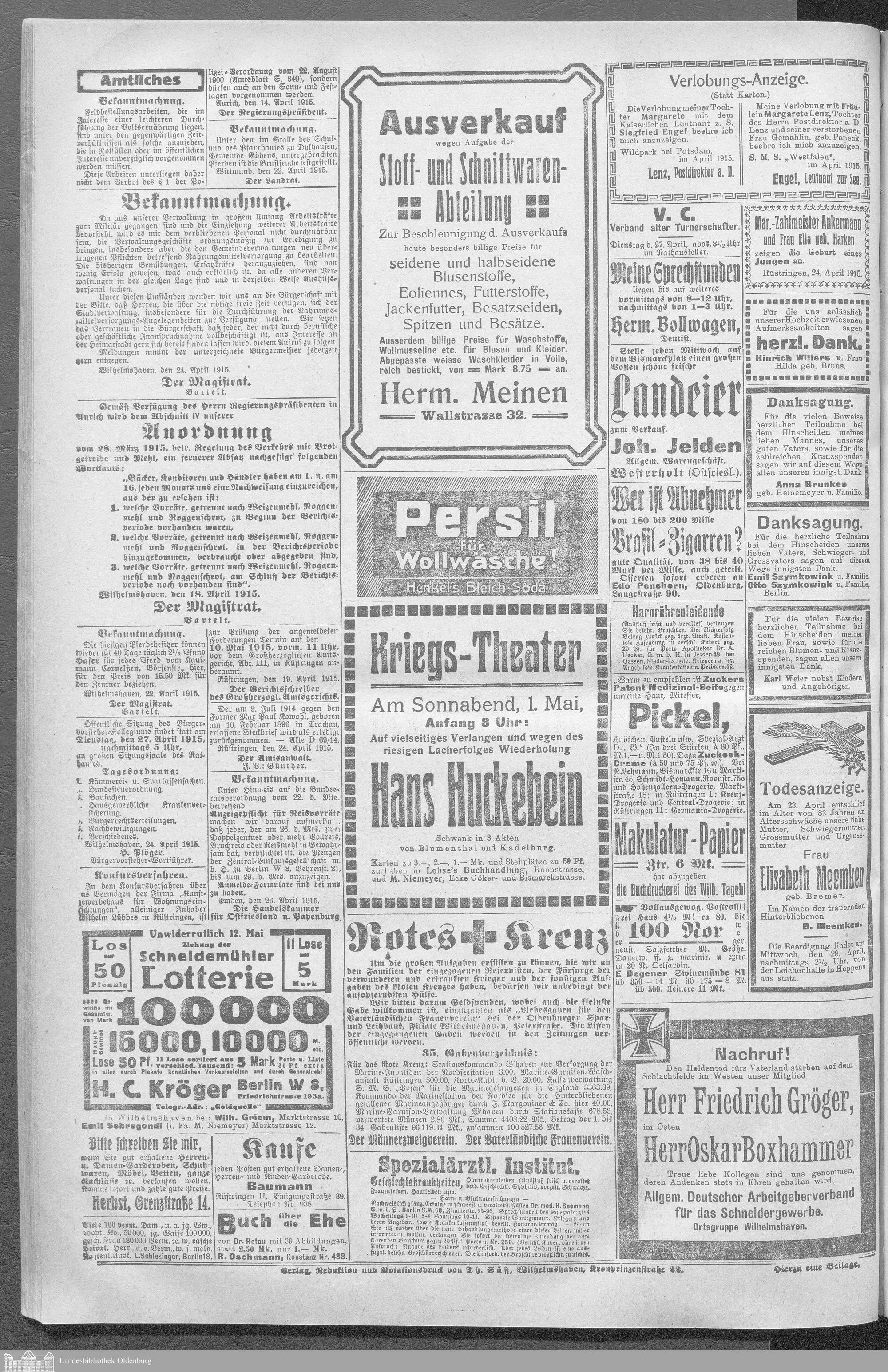 Wilhelmshavener Tageblatt. 1909-1929