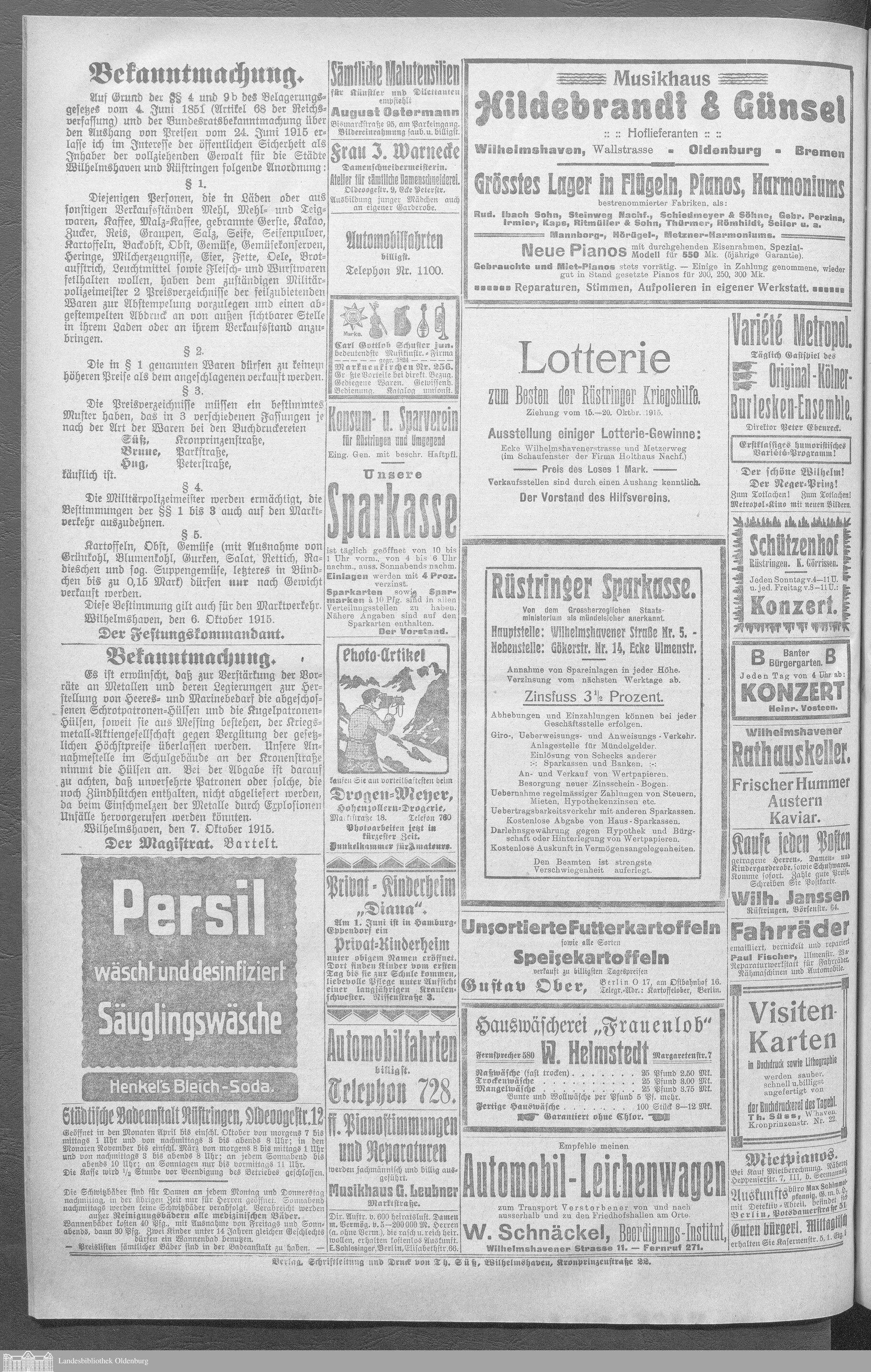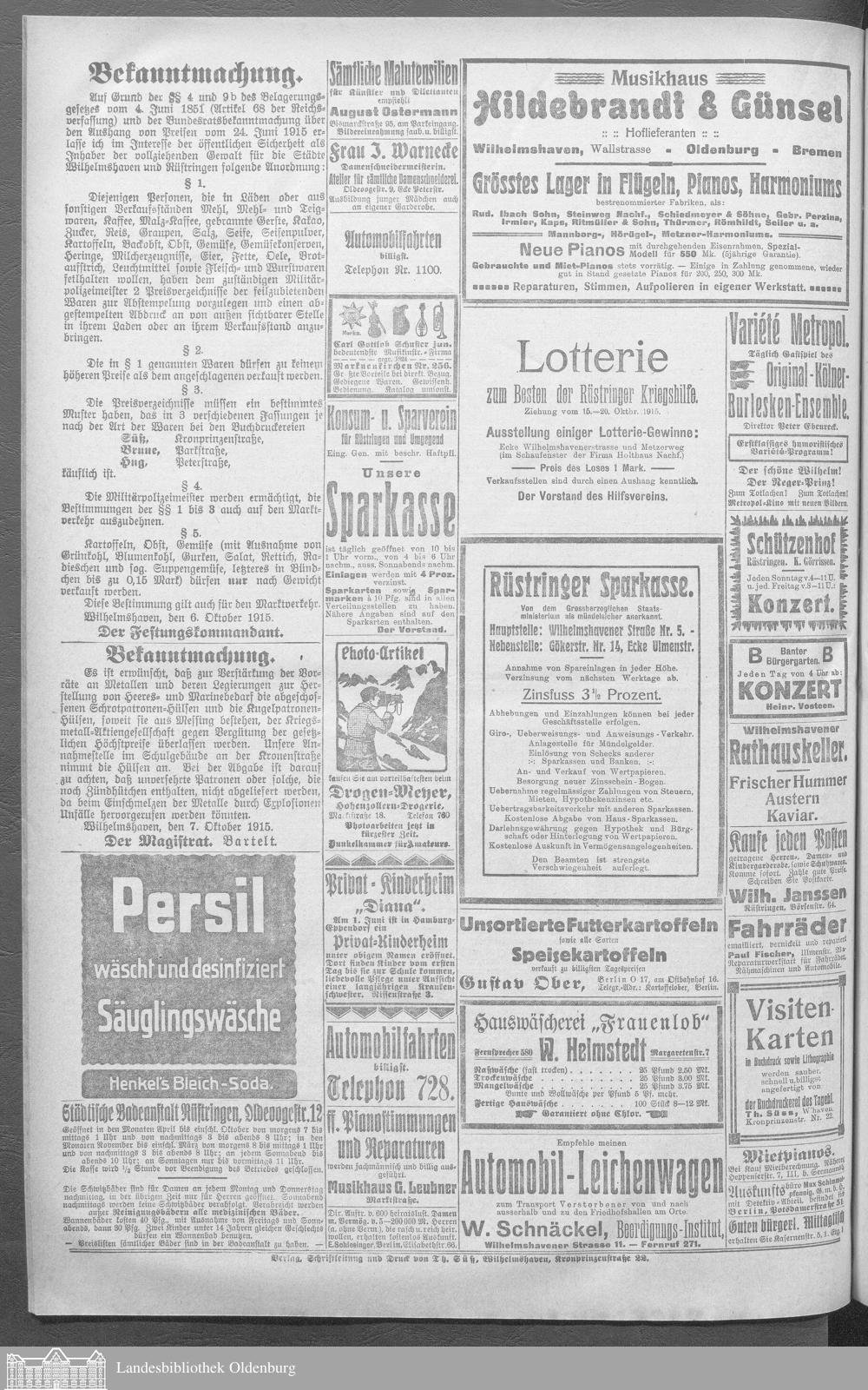 Wilhelmshavener Tageblatt. 1909-1929