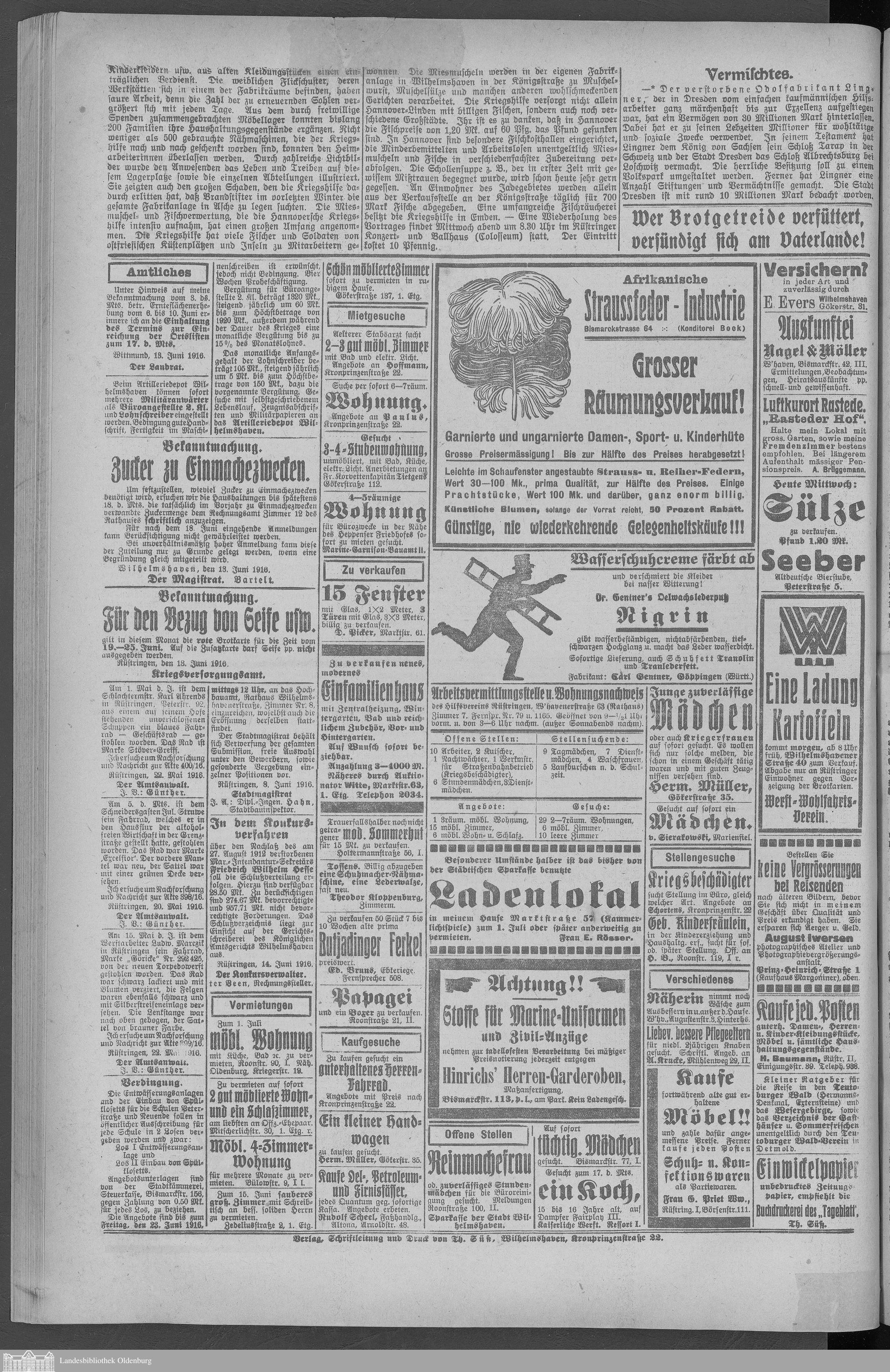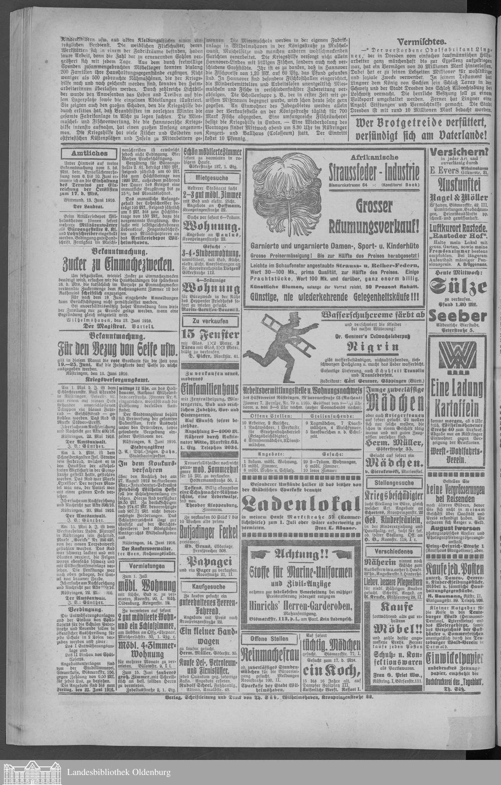 Wilhelmshavener Tageblatt. 1909-1929