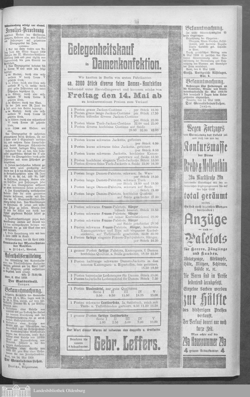 Wilhelmshavener Tageblatt. 1909-1929