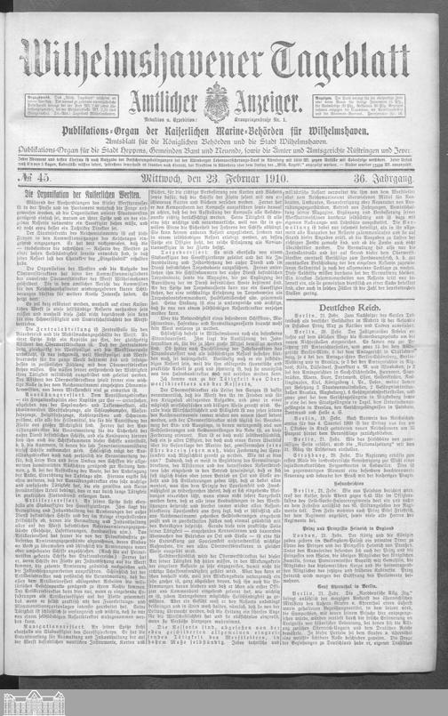 Wilhelmshavener Tageblatt. 1909-1929