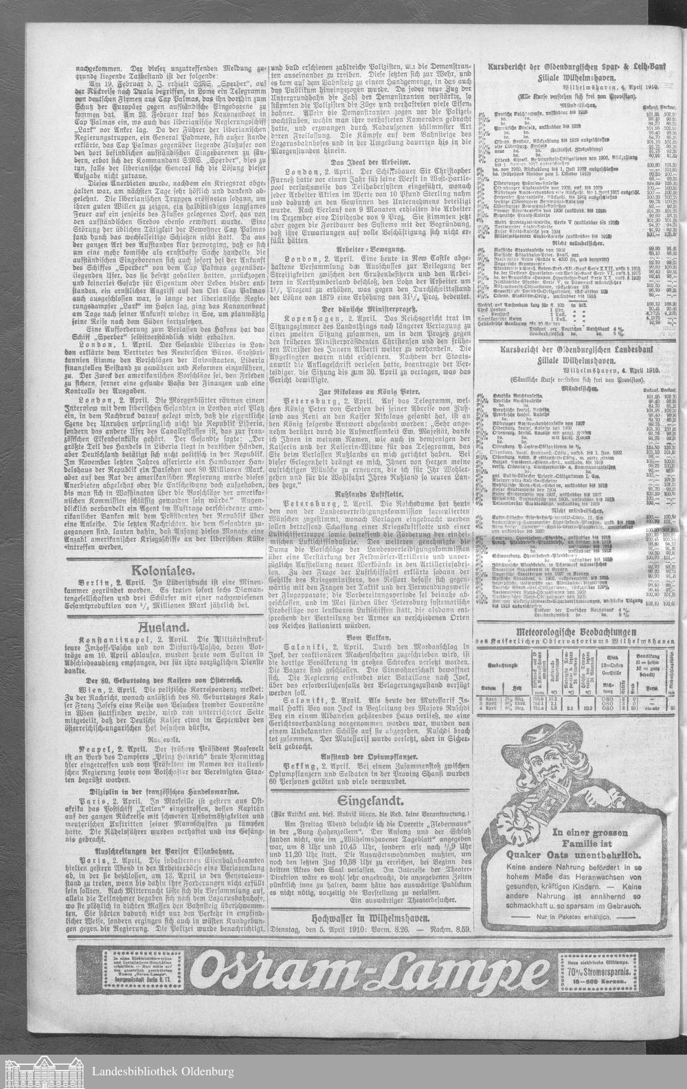 Wilhelmshavener Tageblatt. 1909-1929