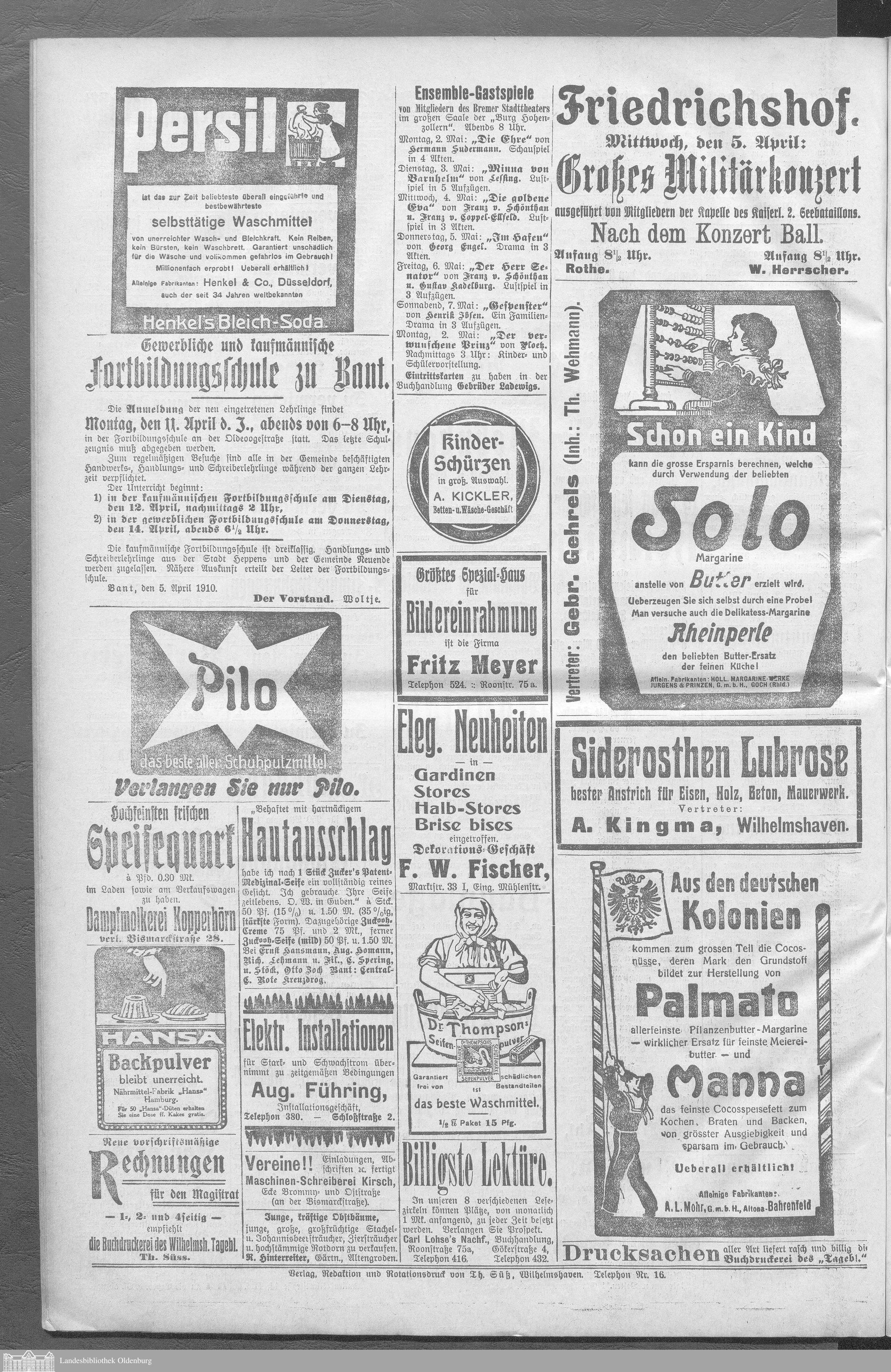 Wilhelmshavener Tageblatt. 1909-1929