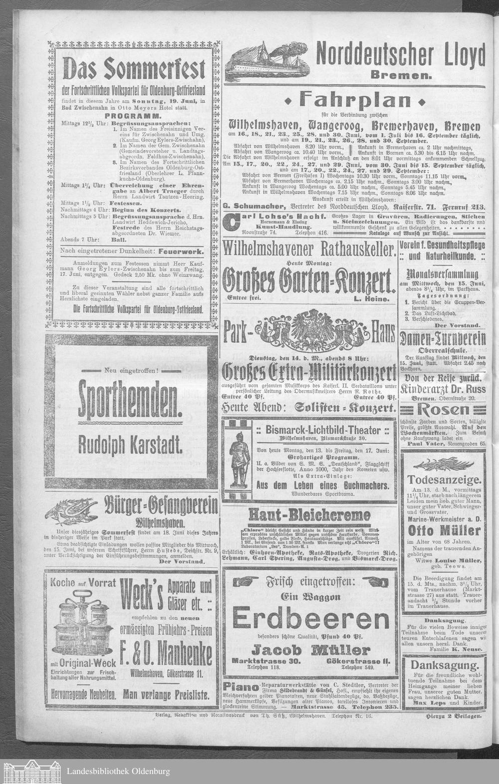 Wilhelmshavener Tageblatt. 1909-1929
