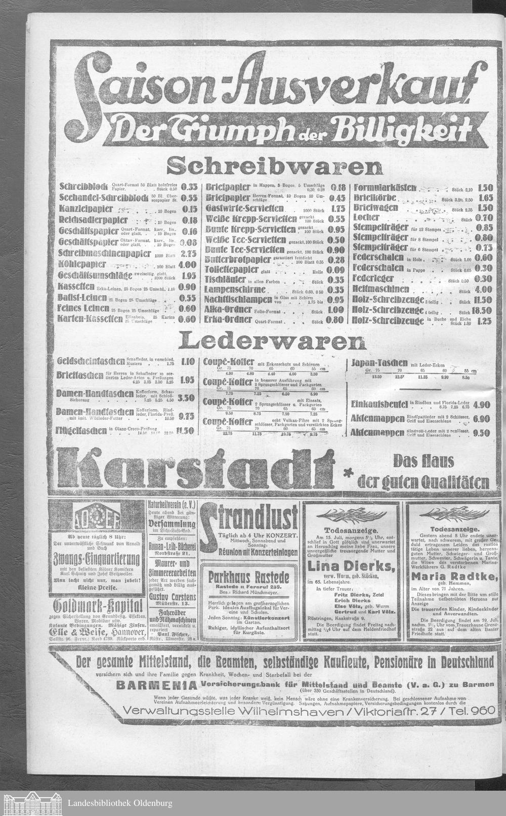 Wilhelmshavener Tageblatt. 1909-1929