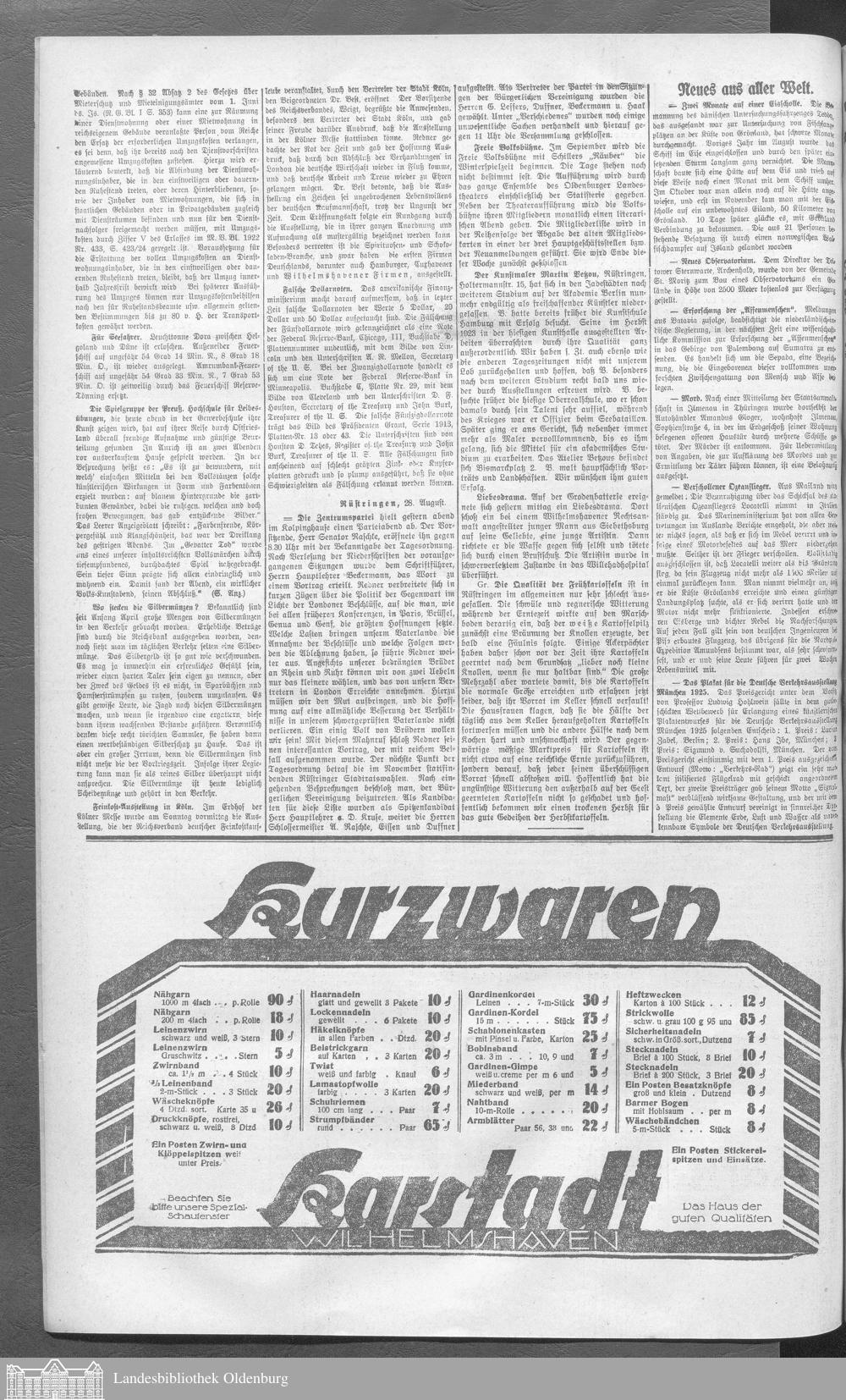 Wilhelmshavener Tageblatt. 1909-1929
