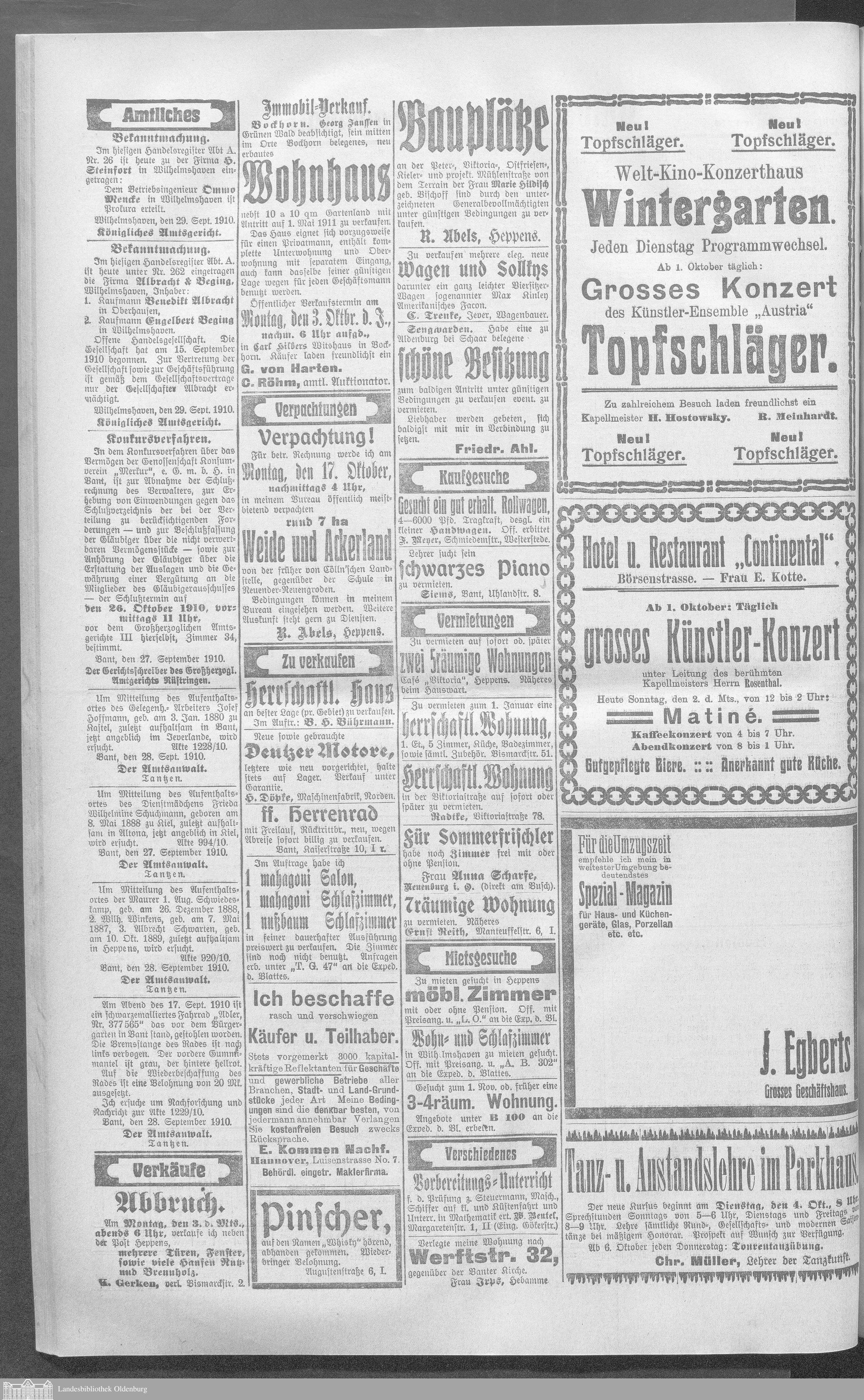 Wilhelmshavener Tageblatt. 1909-1929