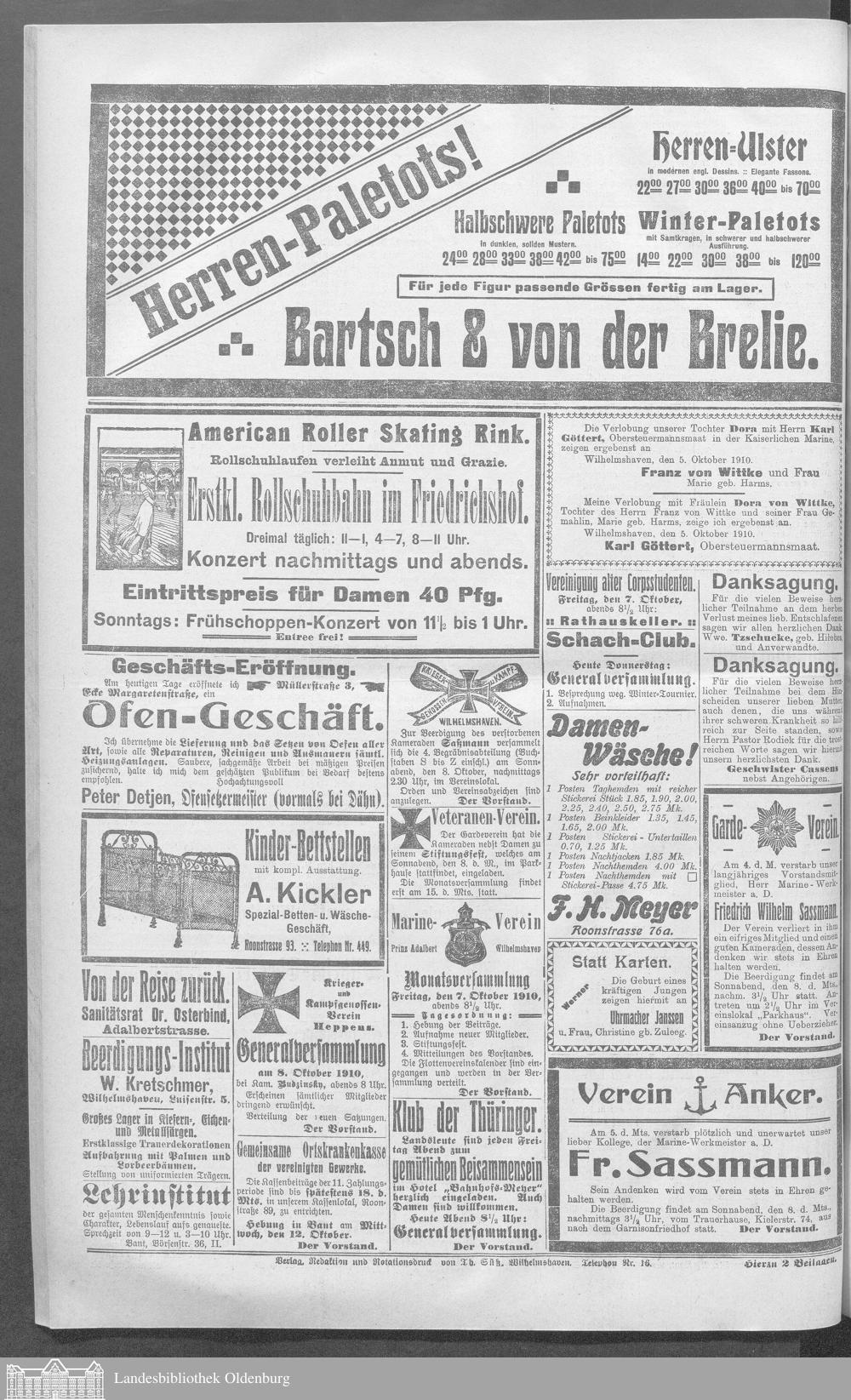 Wilhelmshavener Tageblatt. 1909-1929