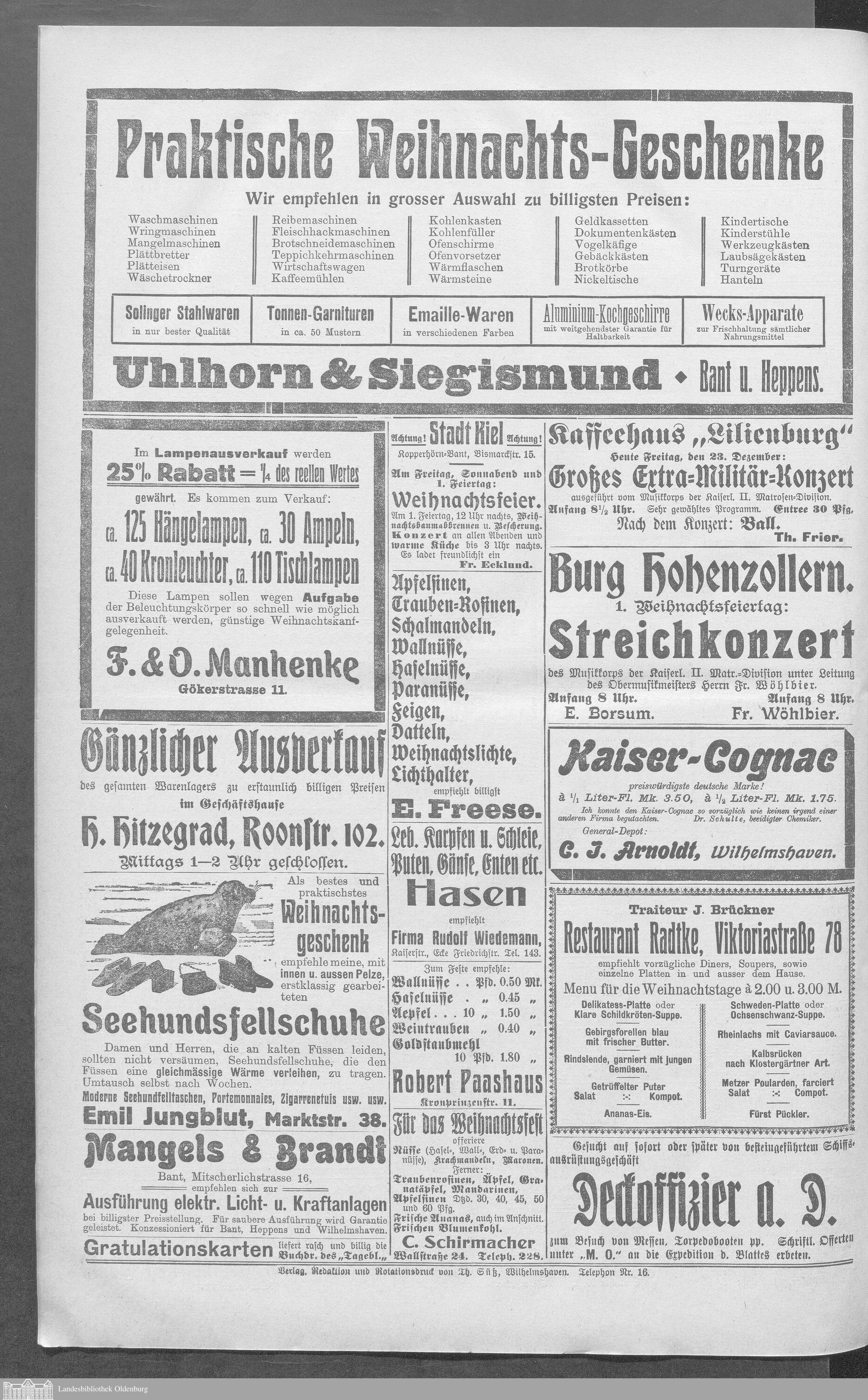 Wilhelmshavener Tageblatt. 1909-1929