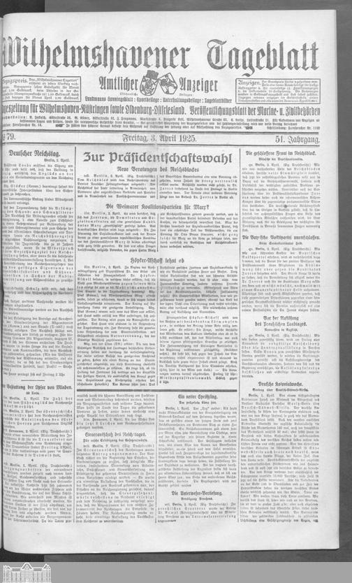 Wilhelmshavener Tageblatt. 1909-1929