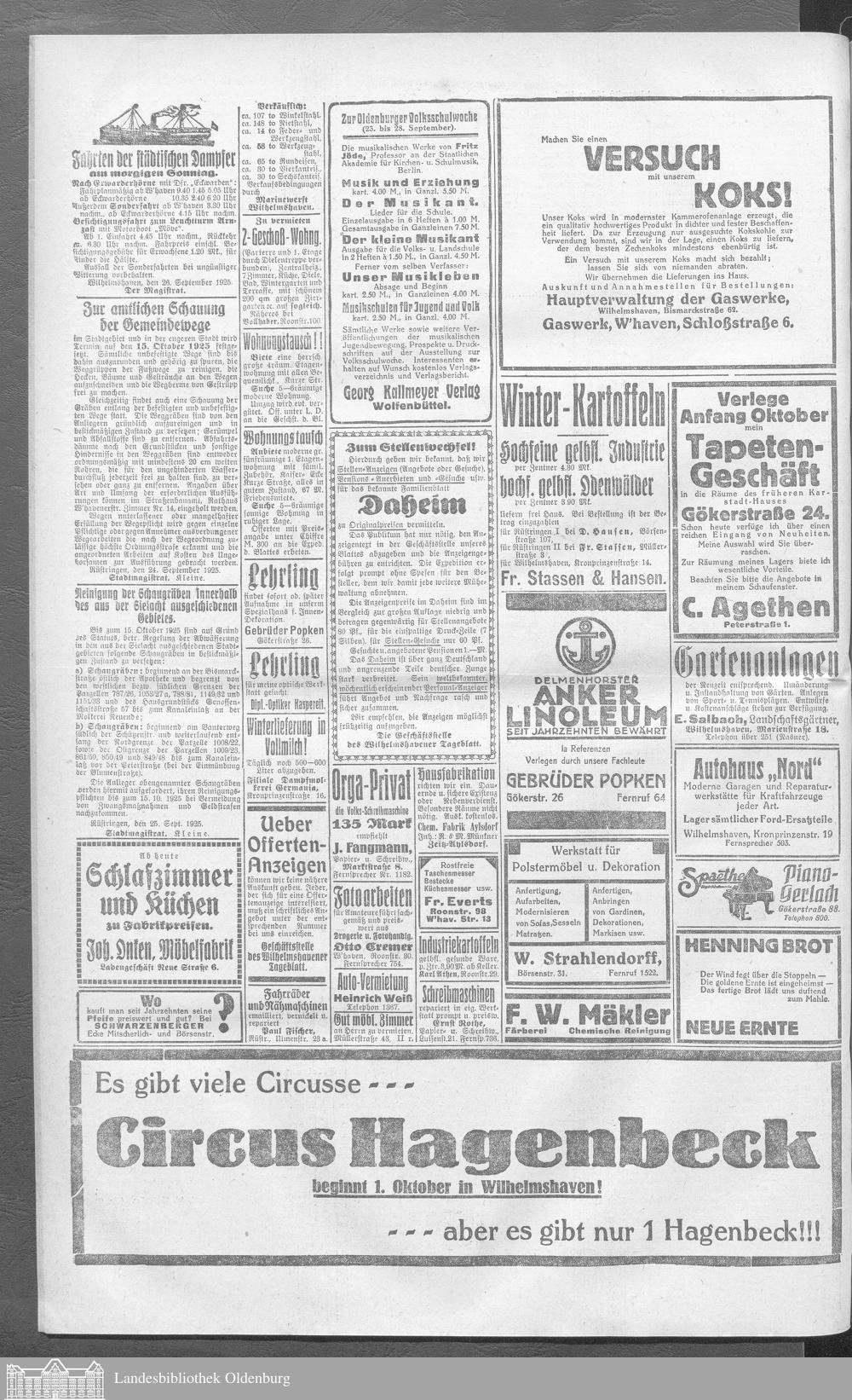 Wilhelmshavener Tageblatt. 1909-1929