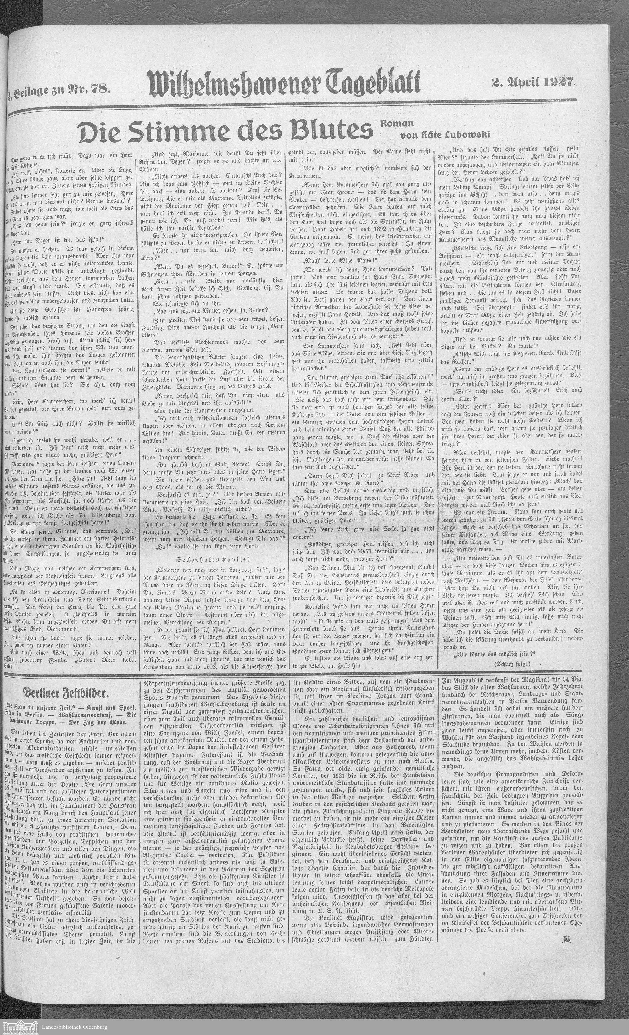 Wilhelmshavener Tageblatt. 1909-1929