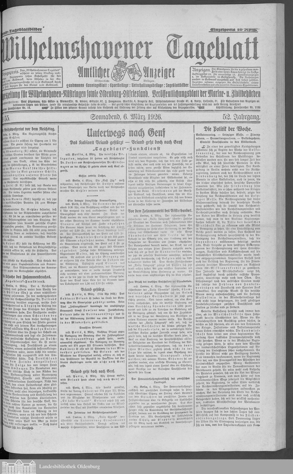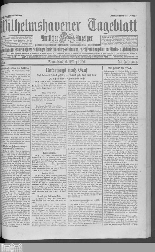 Wilhelmshavener Tageblatt. 1909-1929