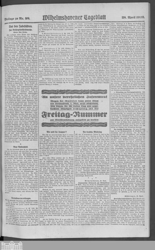 Wilhelmshavener Tageblatt. 1909-1929