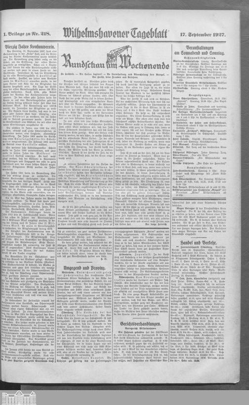 Wilhelmshavener Tageblatt. 1909-1929