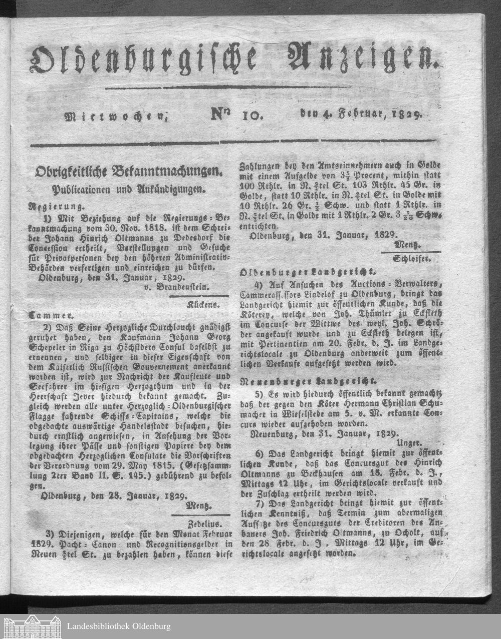 Oldenburgische Anzeigen. 1826-1960