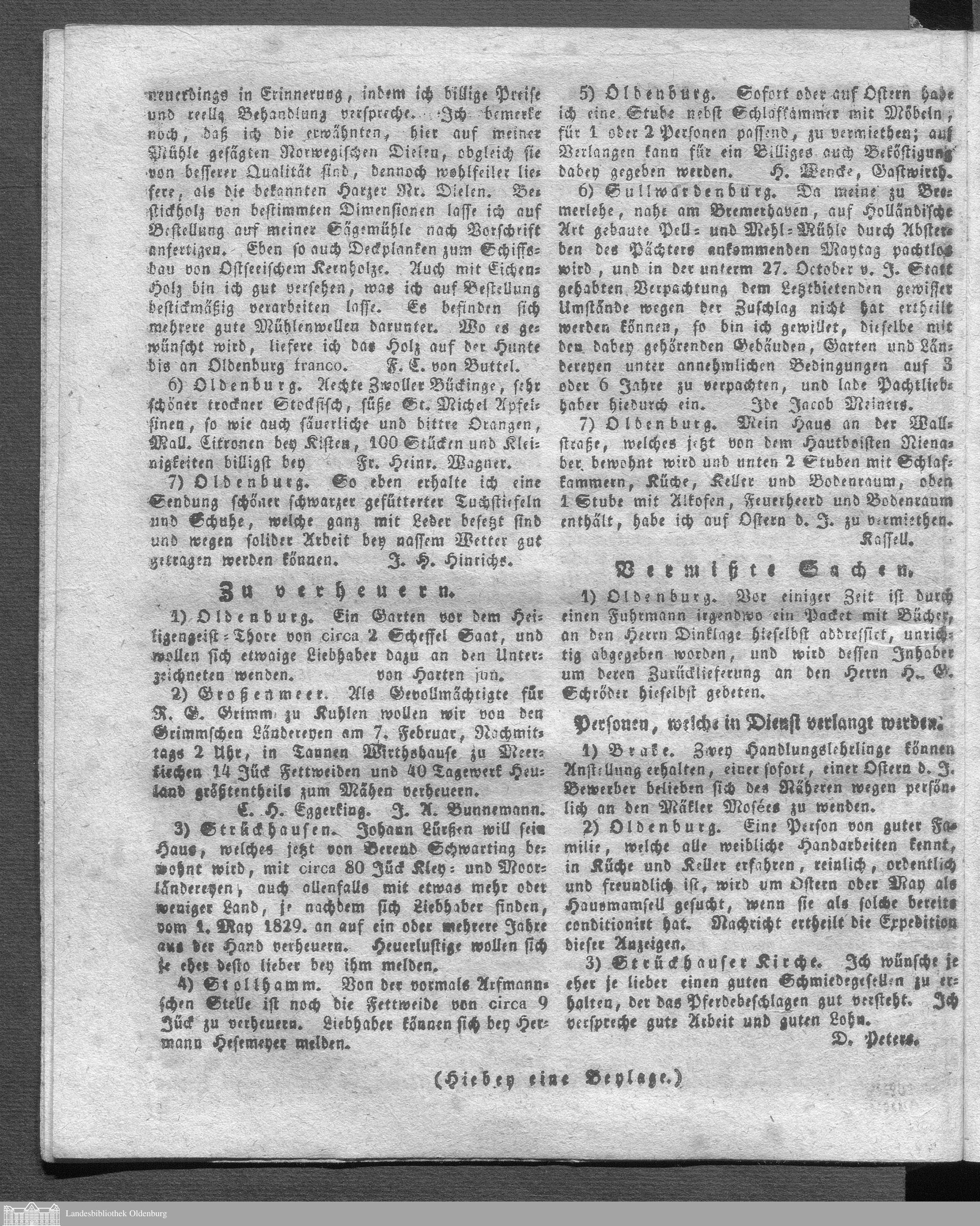 Oldenburgische Anzeigen. 1826-1960