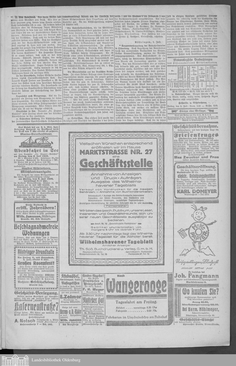 Wilhelmshavener Tageblatt. 1909-1929