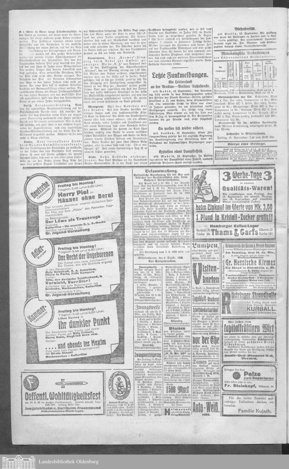 Wilhelmshavener Tageblatt. 1909-1929