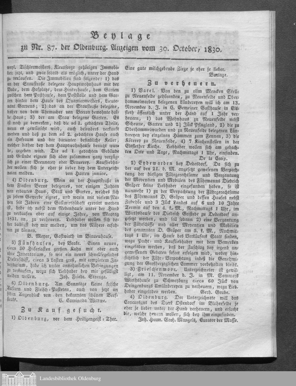 Oldenburgische Anzeigen. 1826-1960