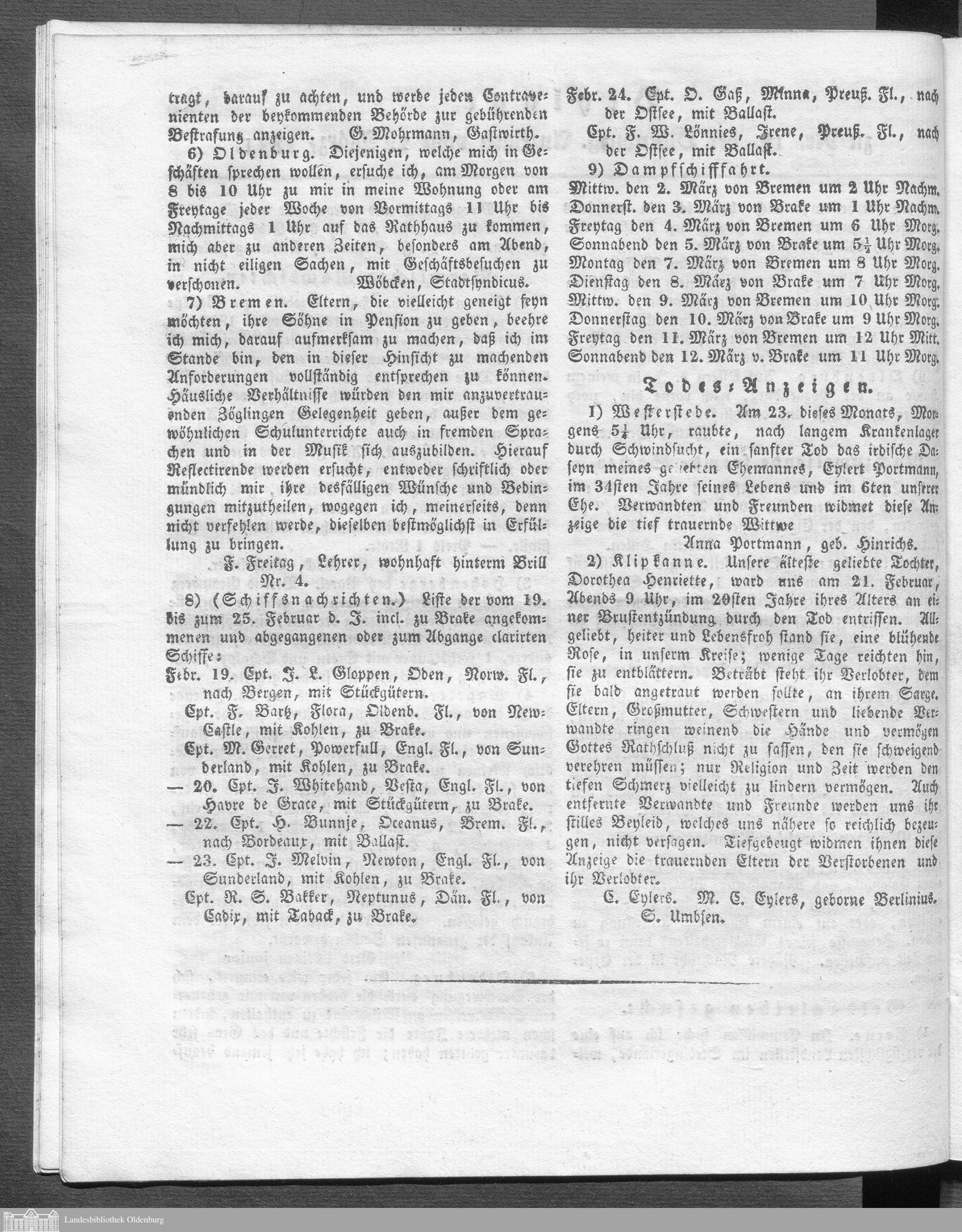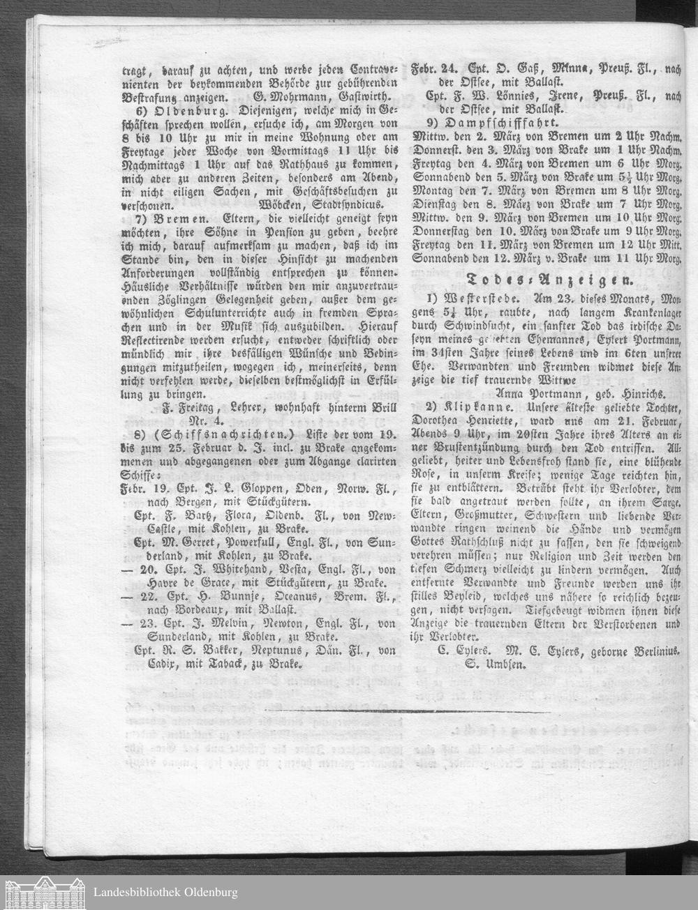 Oldenburgische Anzeigen. 1826-1960